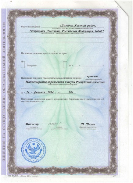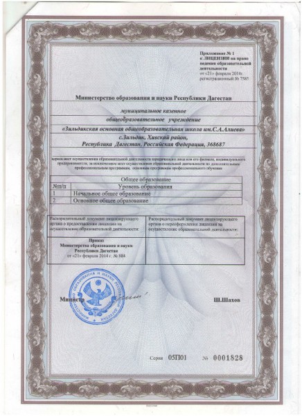 | Адрес местонахождения образовательной организации* | 368687 РЕСПУБЛИКА ДАГЕСТАН РАЙОН ХИВСКИЙ СЕЛО ЗИЛЬДИК ул.Центральная 1А |